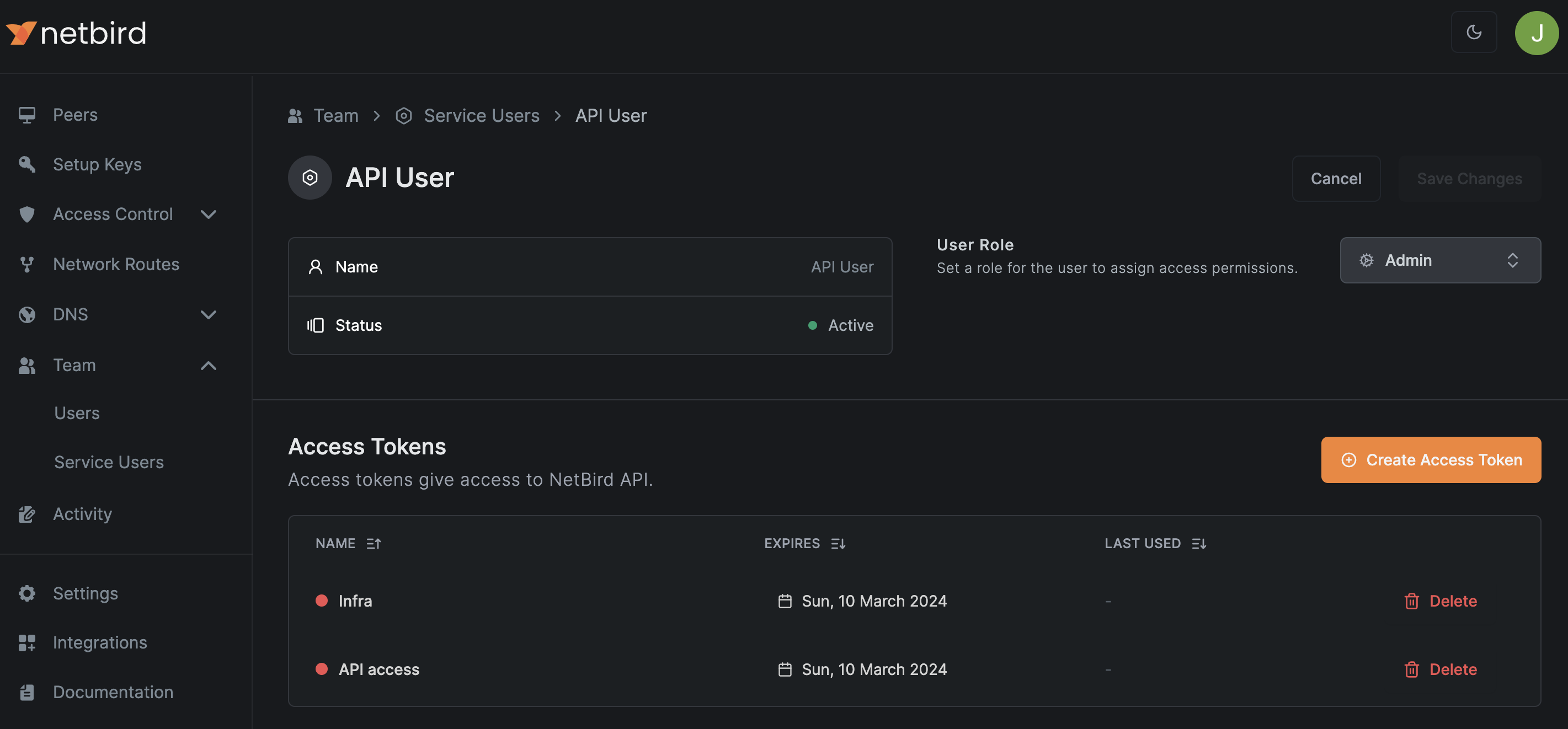- Third-party integrations: if you want to integrate openZro with a third-party service, you can use a service user to provide access to your data without giving the third-party service access to your personal account.