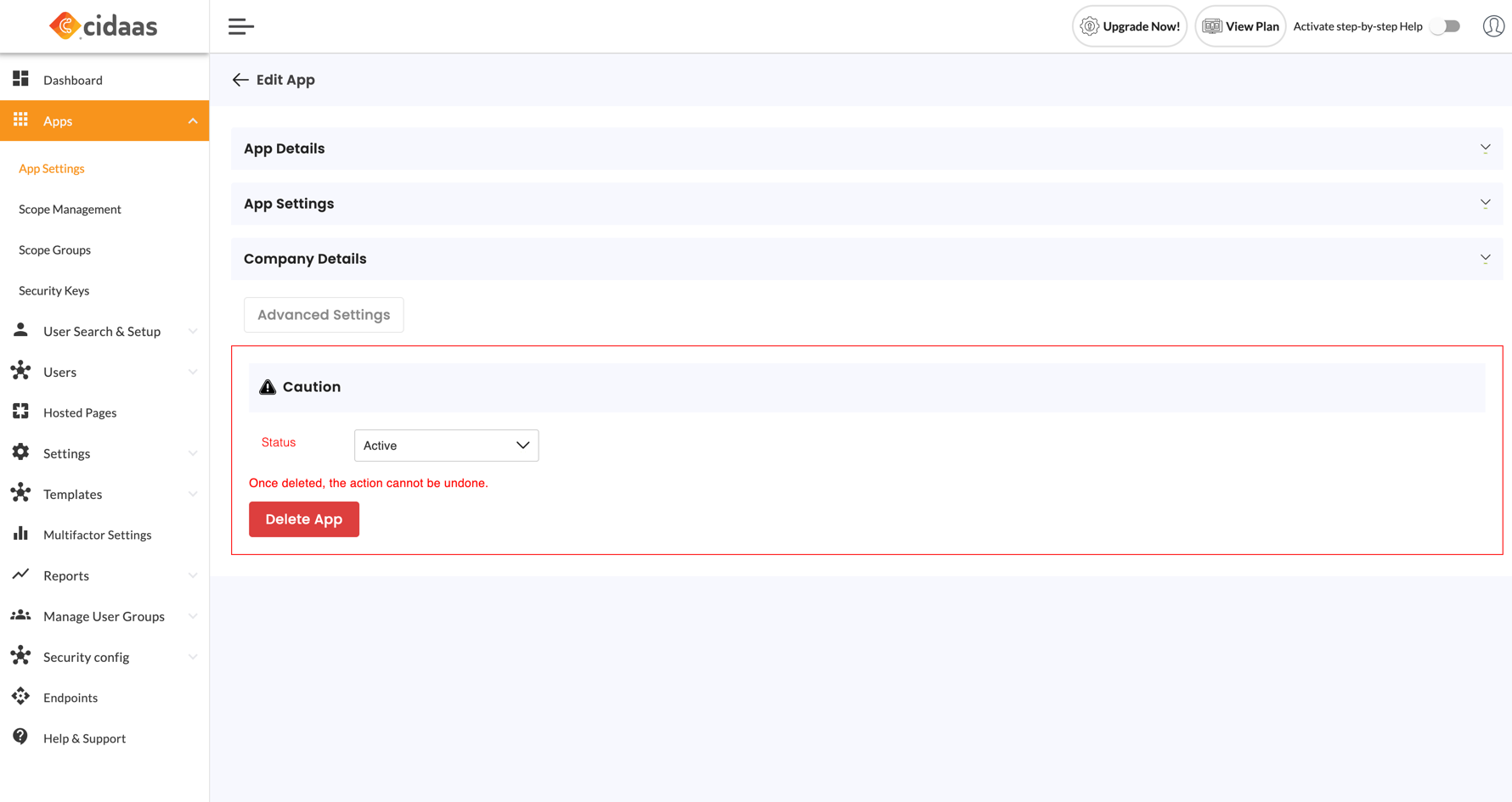 Log in to your cidaas tenant's admin console (e.g., https://<your-tenant>.cidaas.eu). Click Apps in the left-hand sidebar, select App Settings, then click + Create New App.