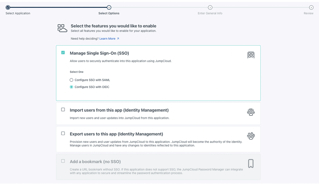 Enable Manage Single Sign-On (SSO), select Configure SSO with OIDC and click Next