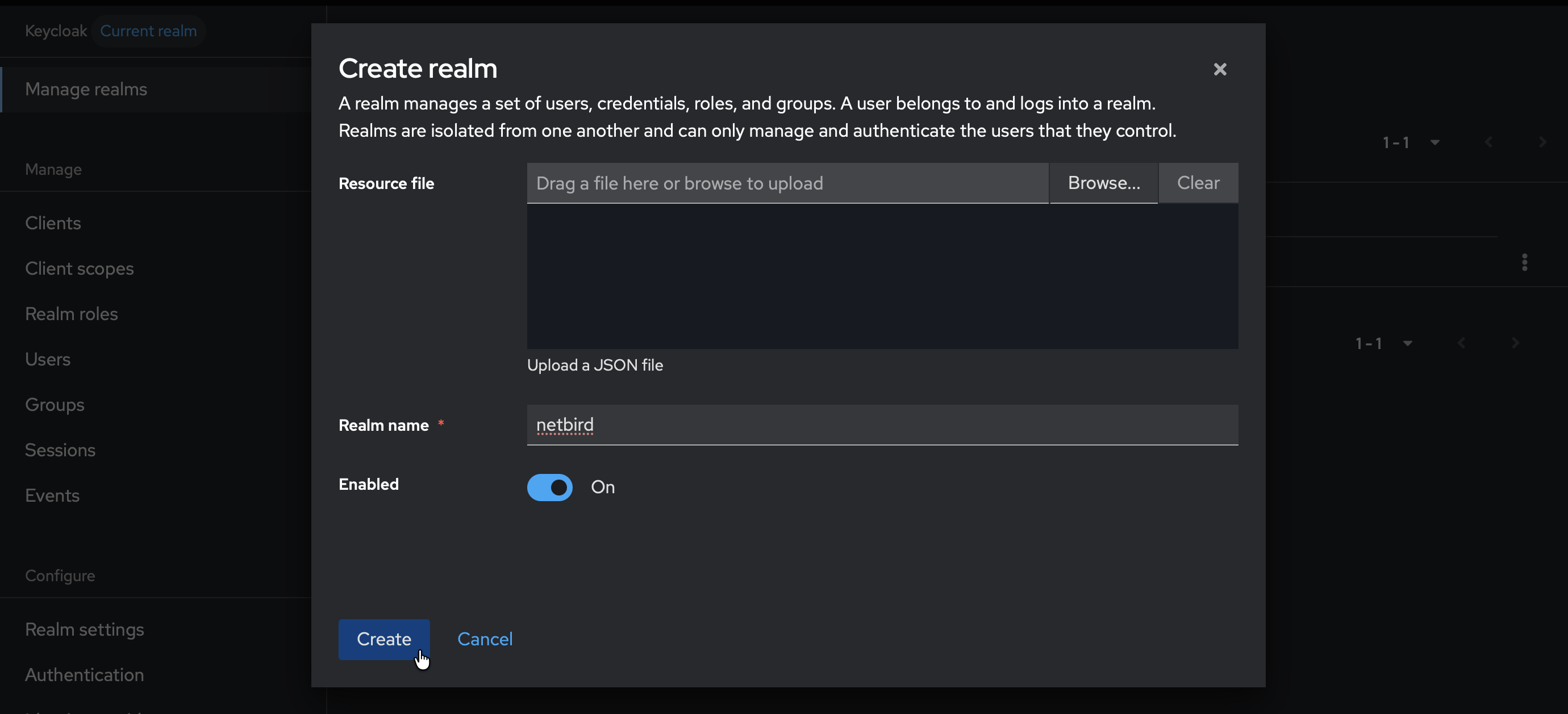 Masteror your current realm) - Click Create Realm