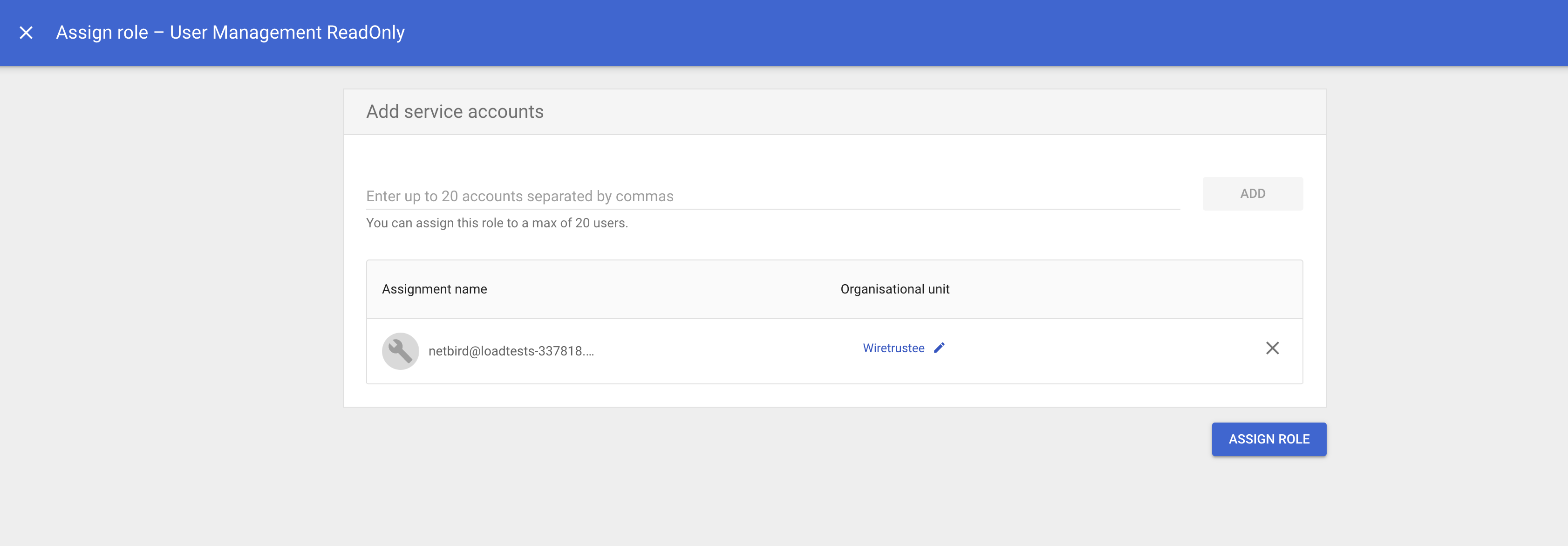 - Click Assign service accounts