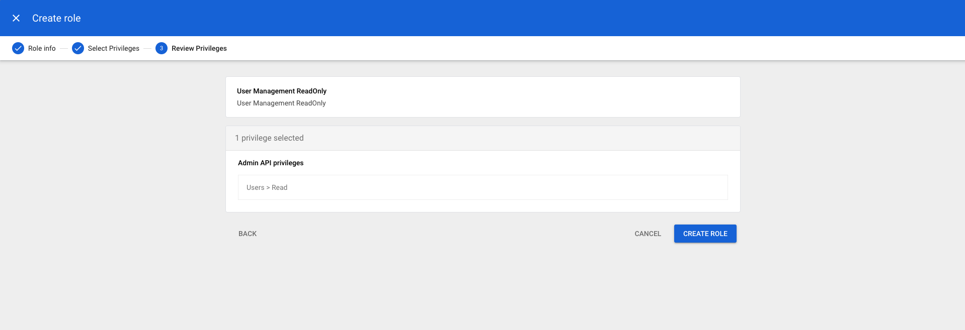 - Click CREATE ROLE
