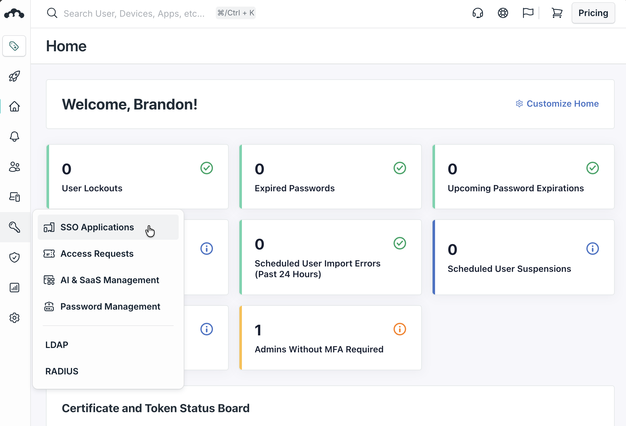 JumpCloud is a cloud-based directory platform that provides identity, access, and device management. It offers single sign-on (SSO), multi-factor authentication (MFA), and centralized user management.